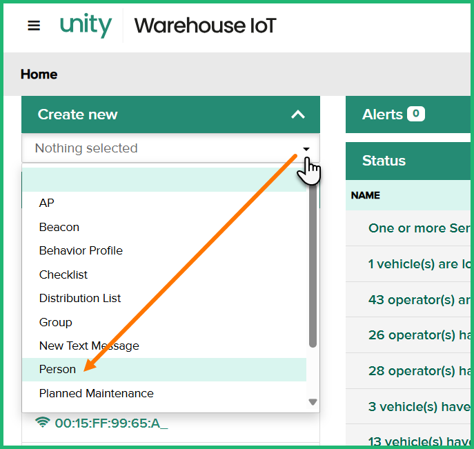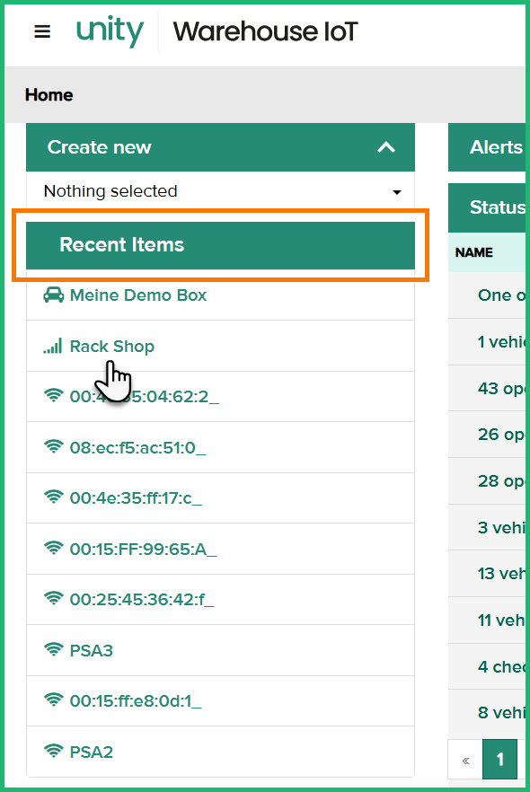 - Clicking Home will bring you back to the Home screen from anywhere within the Warehouse IoT application.