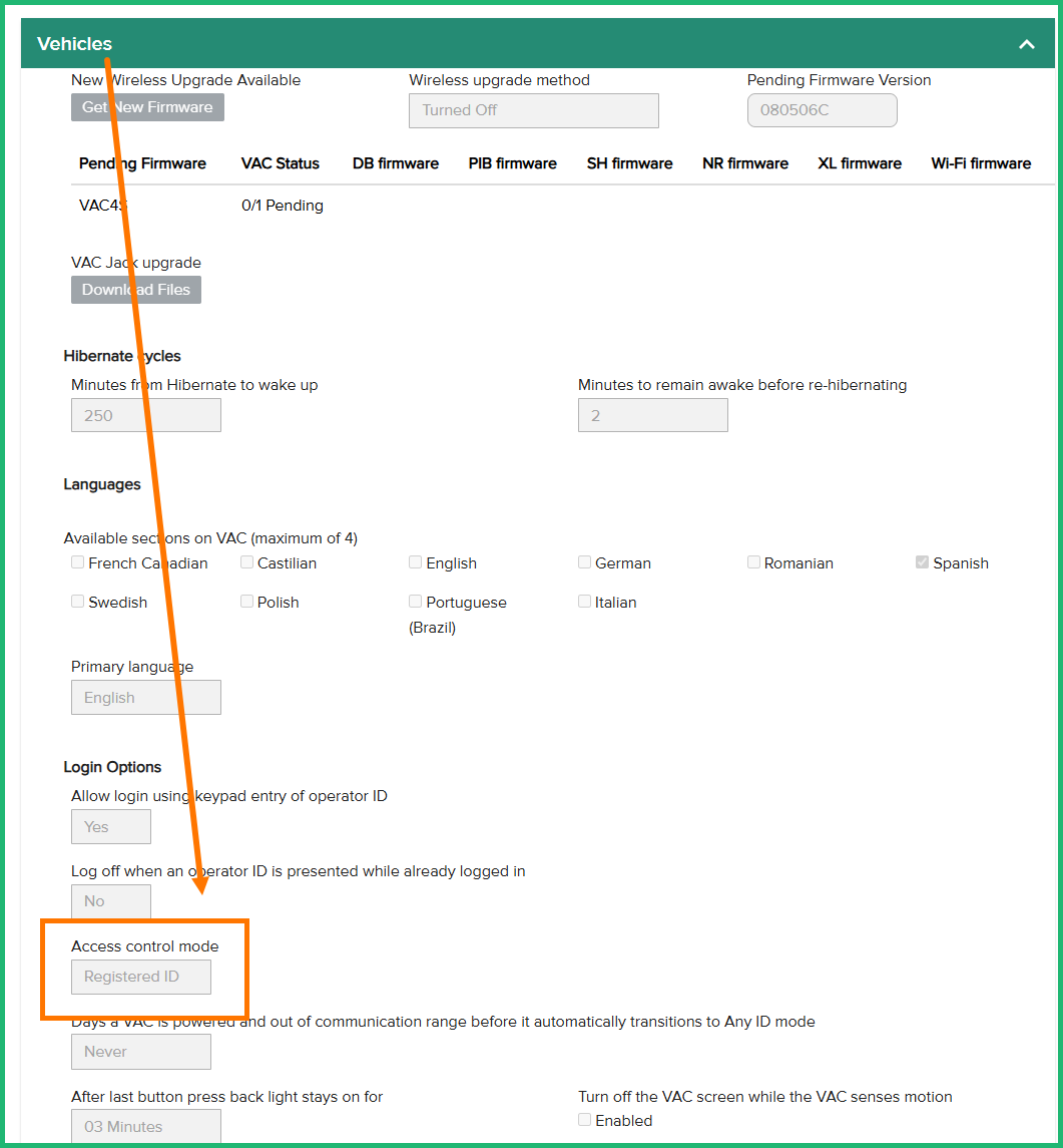 As part of the Go Live event, you will need to set vehicle field, Access Control Mode, to Registered ID.