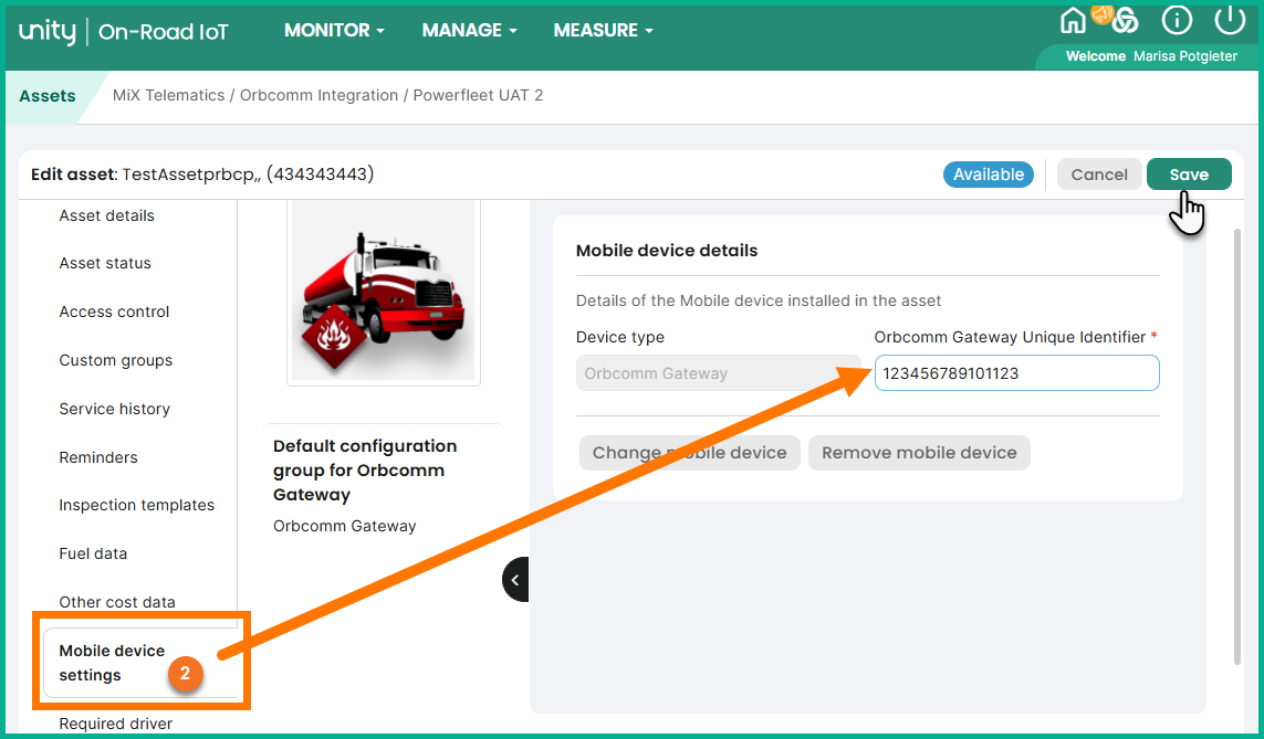 - Enter the Orbcomm unique identifier.