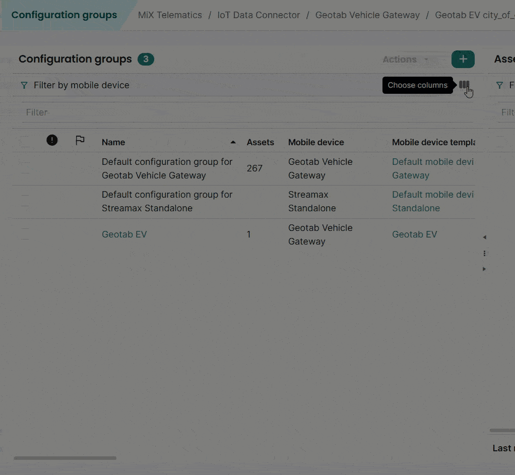 - Click the column chooser icon that sits at the top right of each list.
