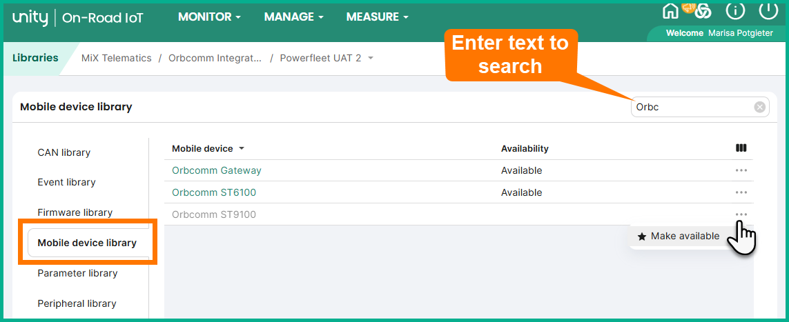 - Search for the relevant Orbcomm device.